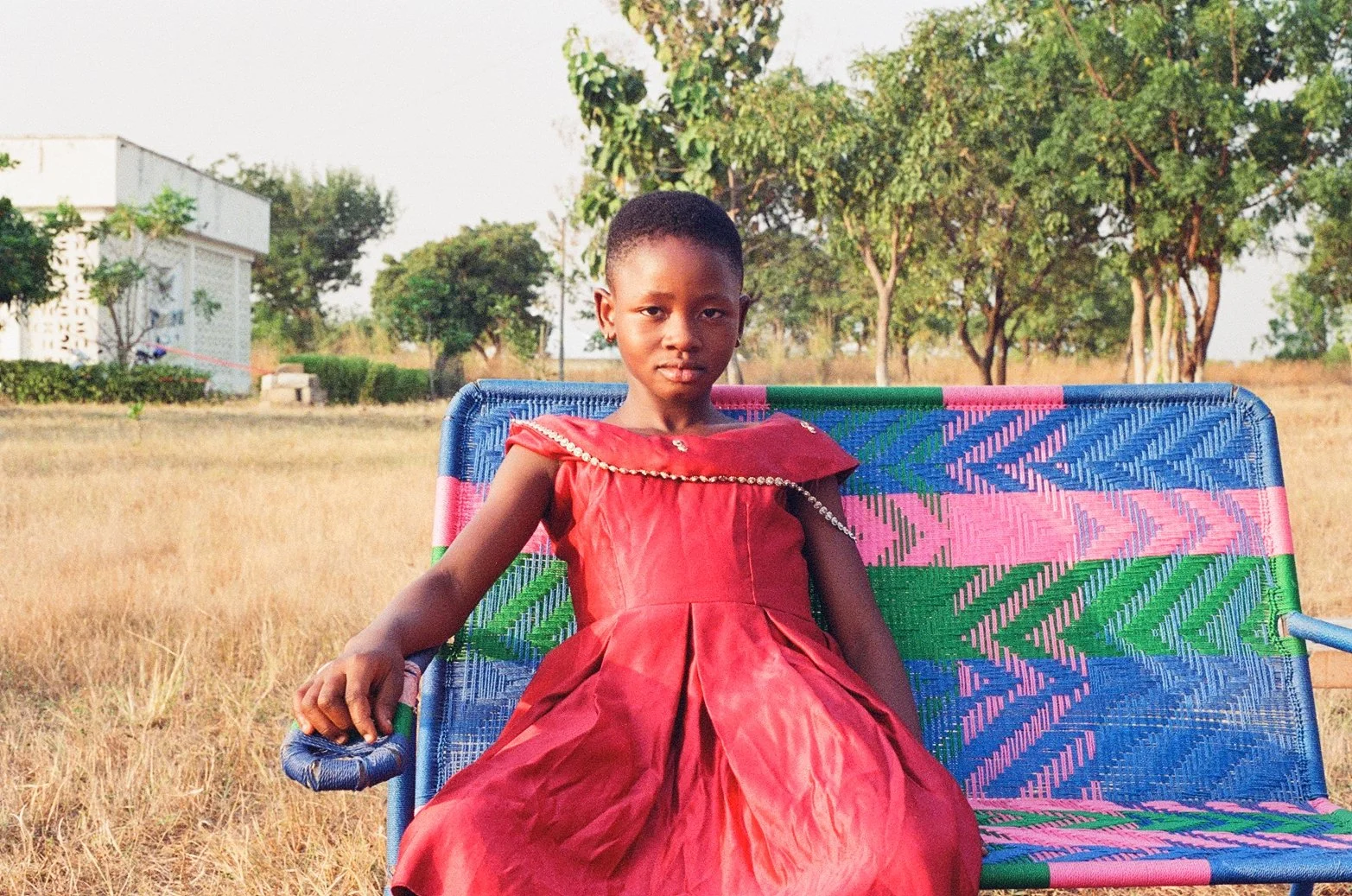 A girl on a handwoven couch in Loho, Wa the Savannah region of Ghana.